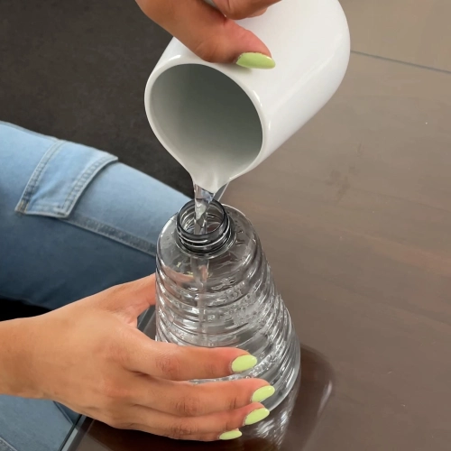En un atomizador limpio vierte la taza de agua, el vinagre y el jabón líquido suave