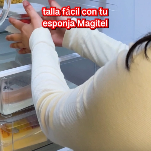 Con la ayuda de tu esponja Magitel, limpia las paredes, bandejas y compartimentos.