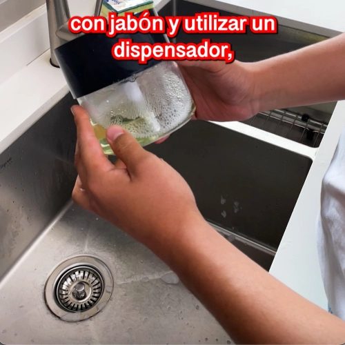 Utiliza un dispensador de jabón, en lugar de un recipiente.