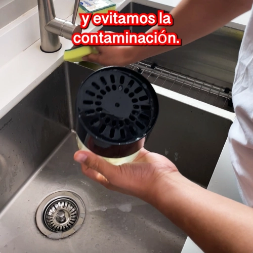 Gracias a su tecnología no raya, puedes usarla con confianza en todo tipo de materiales: acero inoxidable, vidrio o cerámica. Además, su estructura evita la acumulación de restos de comida, ayudando a mantener tu cocina más higiénica.