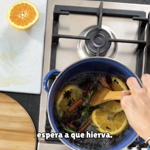 Una vez que tu casa esté limpia, es momento de crear el ambiente con un tip sencillo para aromatizar tu casa en Navidad. Este aromatizante es fácil de preparar y perfecto para la temporada: