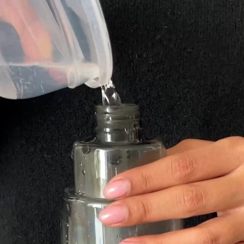 Llena el depósito con una mezcla suave: puedes usar agua tibia con unas gotas de vinagre blanco o tu limpiador favorito.
