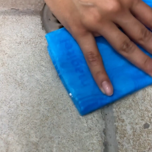 Limpia la superficie inicial: Usa una tela Magitel húmeda para retirar polvo, residuos de jabón y cabellos alrededor de la coladera.